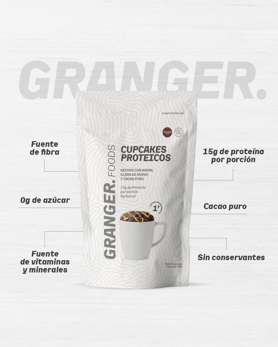 Cupcakes chocolate proteico 360gr – granger