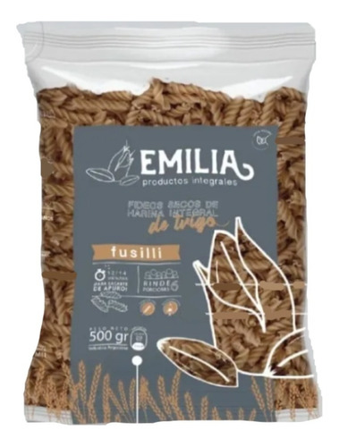 / Fideos secos de harina integral de trigo, fusilli – emilia 500gr