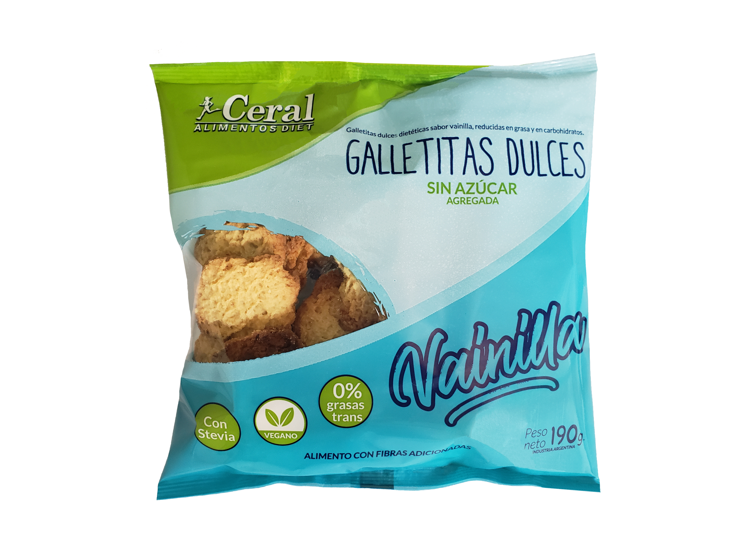 / Galletitas sin azucar de vainilla – ceral 190grs. apto veganos y diabéticos