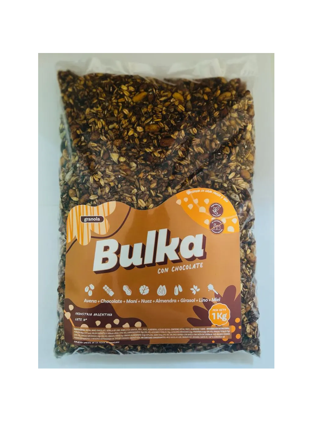 / Granola con chocolate (almendras, chocolate, maní, girasol, nueces, avena, lino y miel)